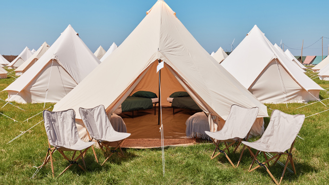 De vooropgezette tenten op Fresh Village zorgen ervoor dat jij niet meer hoeft te sjouwen.